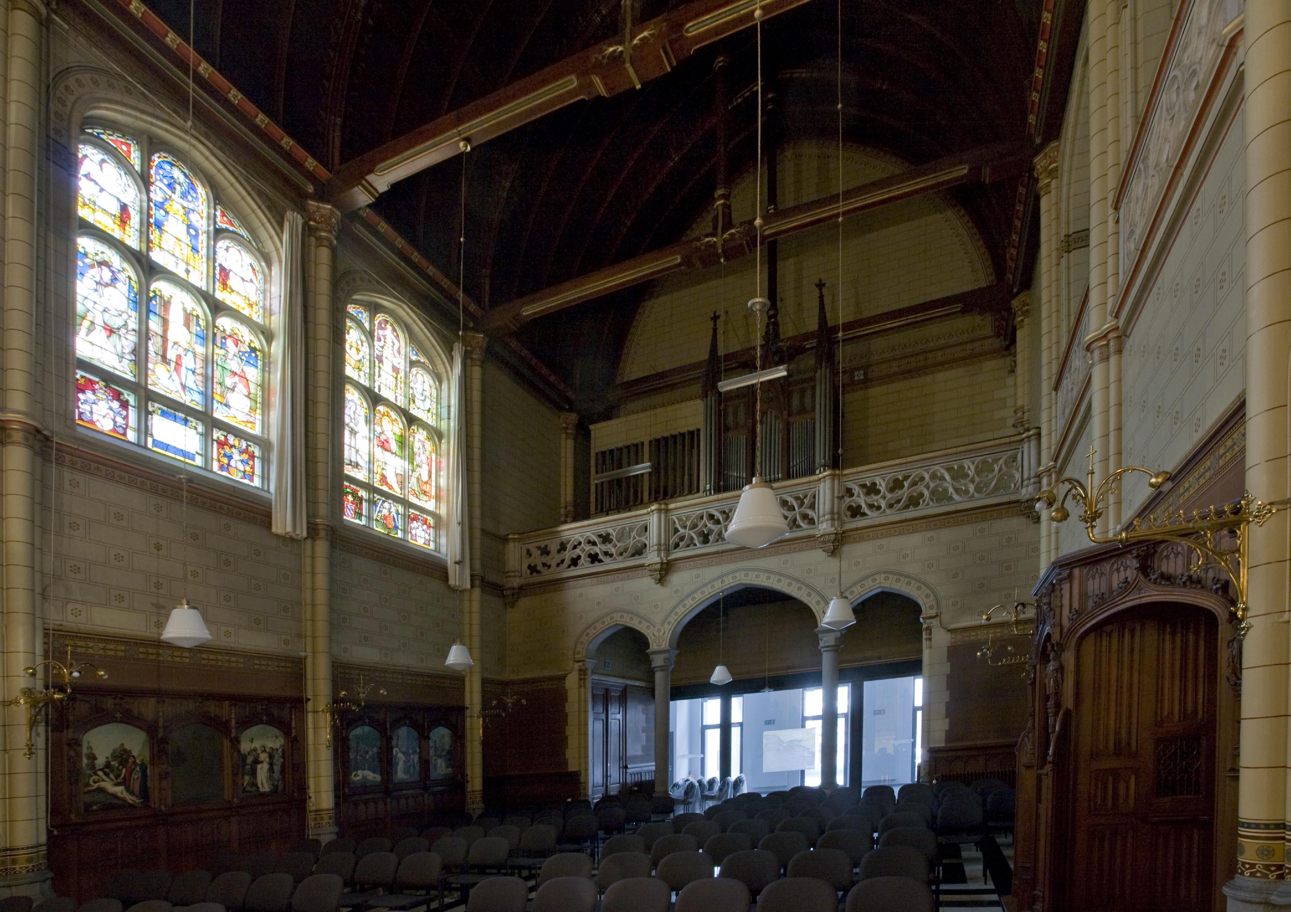 De kapel heeft een bestemming gekregen als conferentie-, receptie- of ontvangstzaal van het rectoraat. Bij speciale gelegenheden kunnen er kleine concerten, lezingen of exposities plaatsvinden. Dankzij de herbestemming kon de volledige kapel behouden blijven, inclusief de authentieke interieuraankleding. Voor een betere ontsluiting, hebben de architecten de kamers tussen de kapel en de straatgevel uitgebroken en de vensters in de straatgevel verlaagd tot deuren. In de foyerruimte is een vestiaire voorhanden.